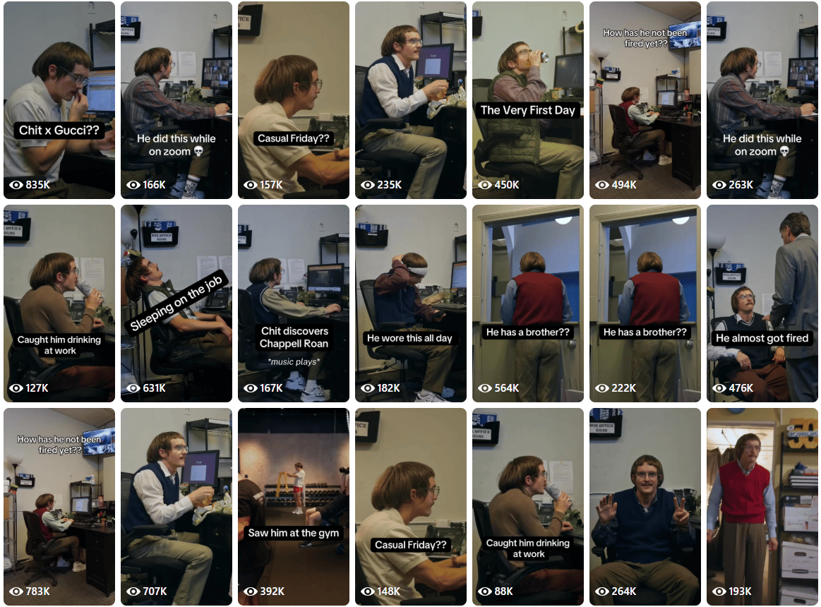 If you’re my age (millennial) and are on TikTok there is a good chance you’ve seen “Chit” played by Jay Renshaw. Chit is a character who would fit in any show in the style of The Office, Parks and Rec, or Abbott Elementary. He’s quirky, off the wall, and played perfectly by Jay. Chit has blown up on tiktok getting millions of views and already beloved by his followers: